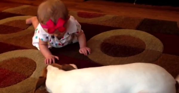 ■【動画あり】なにこれかわいすぎる!(笑)赤ちゃんにハイハイを教える犬の得意げな顔ったら!