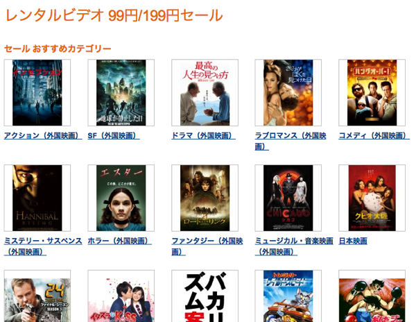 ■Amazonインスタント・ビデオ「レンタルビデオ 99円/199円セール」実施中